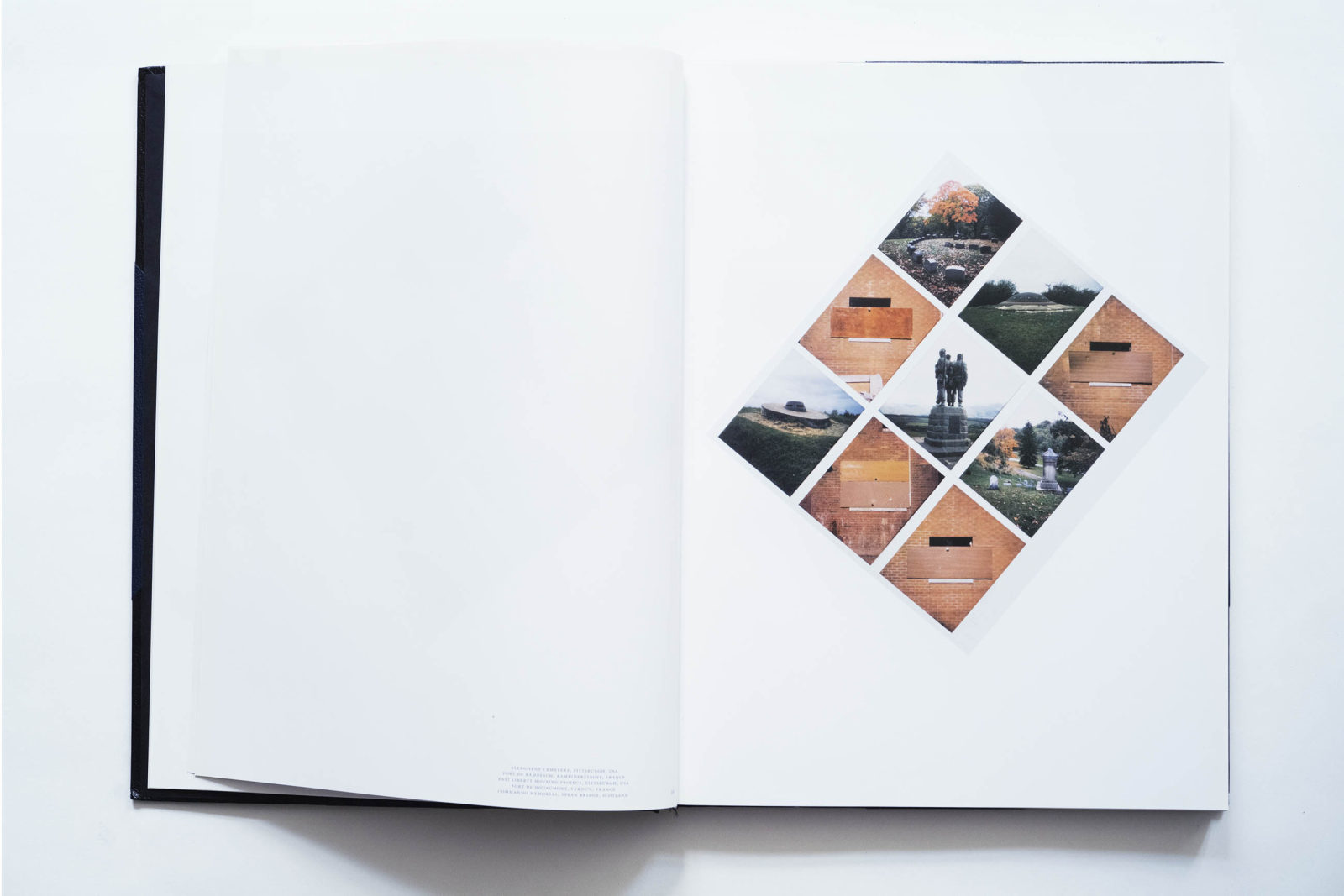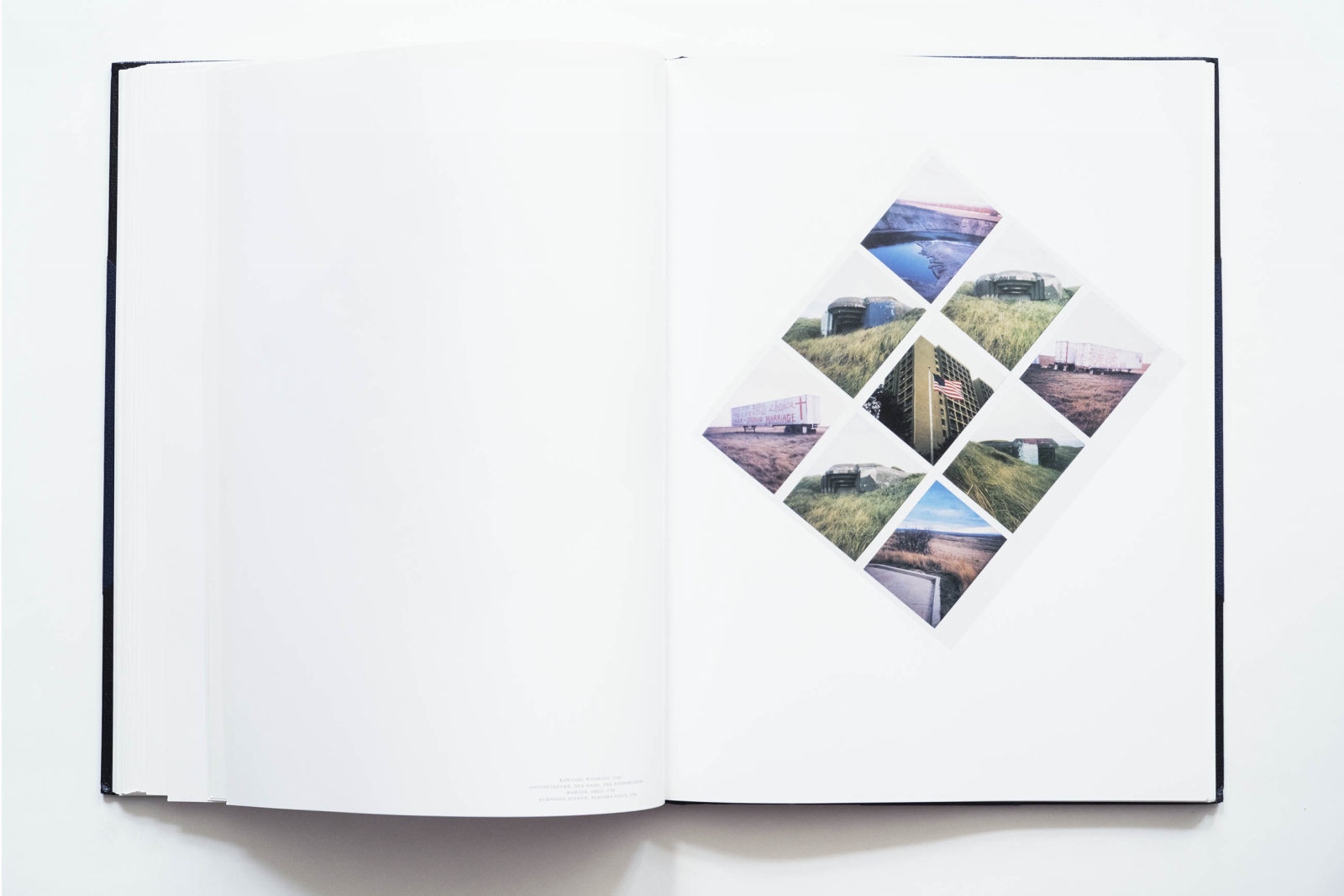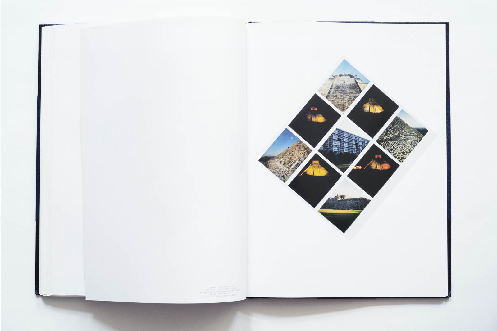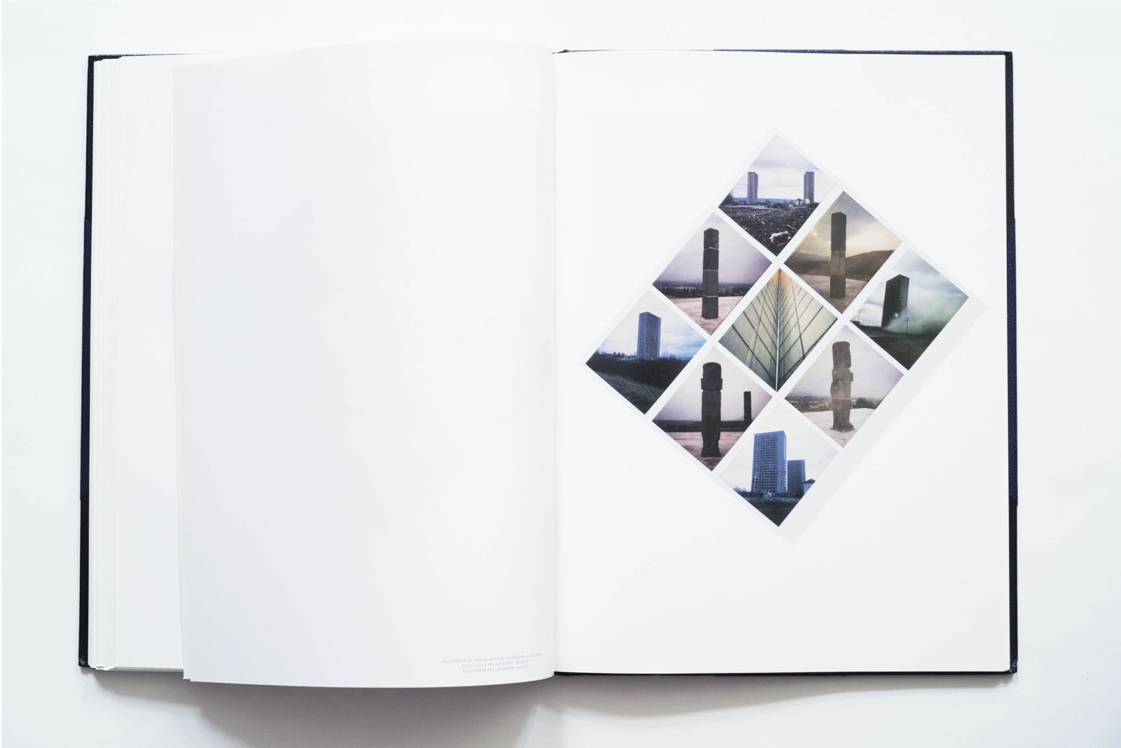 Here is a project where form and content go incredibly well together. This book presents 900 polaroid images of landscapes, monuments, modernist buildings, and architectural topics, arranged into diamond-shaped grids. It reminds me of Wolfgang Tillmans’ book Neue Welt, which is a wide catalogue of the modern world but in Cyprien Gaillard’s hands, these records become stories about decay, destruction and devastation. The book with the work will remain while the polaroids will disappear beyond recall. I saw a few of them recently at a show and noticed the milky look of the polaroid. Rein Wolfs, who wrote the introduction, calls it “a world atlas against disappearance”.
