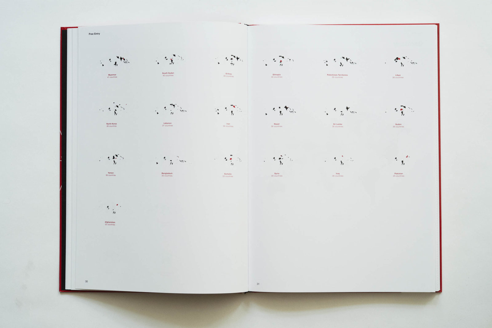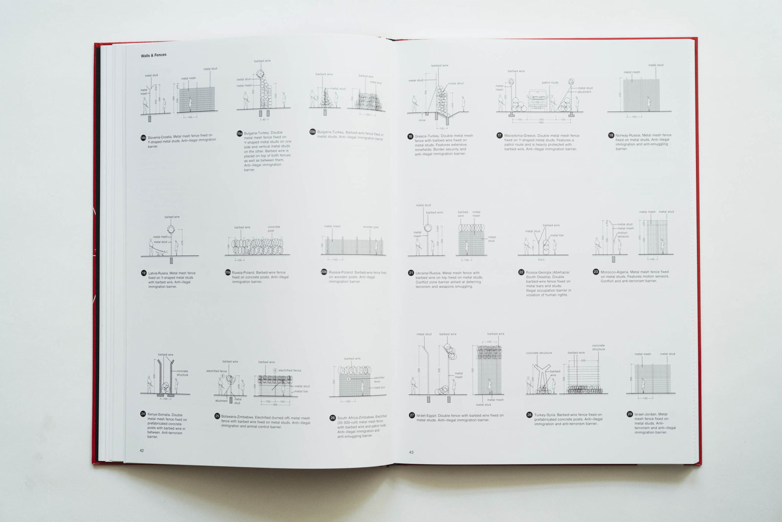 A friend turned me on to this one, it’s one of a kind. A series of perfectly executed 3-D graphic illustrations portraying the new tyranny of the 21st century. Theo Deutinger draws the ways we kill, harm and exclude through the day-to-day implementation of laws and regulations around the globe, giving clarity to situations that are normally happening in chaos and confusion, or just plain oblivion. In the introduction to the book, Deutinger says “illustrating the walls that separate countries, the water cannons directed against protesters, and the modes of capital punishment – gives this book the appearance of an unearthed compendium of blueprints drawn by or for a dictator of our time. For every obstacle to organizing and controlling society, there seems to be a technical solution at hand”. Because he works as an architect, Deutinger is able to give scale to otherwise abstract notions such as citizenship. The 12 pages on Free Entry to Country is such a beautiful illustration about freedom. We start with an extensive world map that shows which country you can travel to with no visa as a German citizen (nearly all of them) and ends with bits of countries scattered in the Middle East, the rare ones you have access to if you are born Afghani, Iranian or Iraqi in today’s world. It sums up how big and how small the world is depending on what passport you have. In another section there is scale comparison of prison cells throughout the world. A strange beauty emanates from the geometry, like a monochrome Mark Rothko painting.